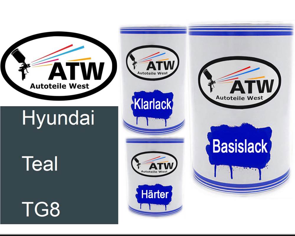 Basislack, 500ml Lackdose + 500ml Klarlack + 250ml Härter - Set. Für Hyundai, Teal, TG8. Profiqualität von ATW.
