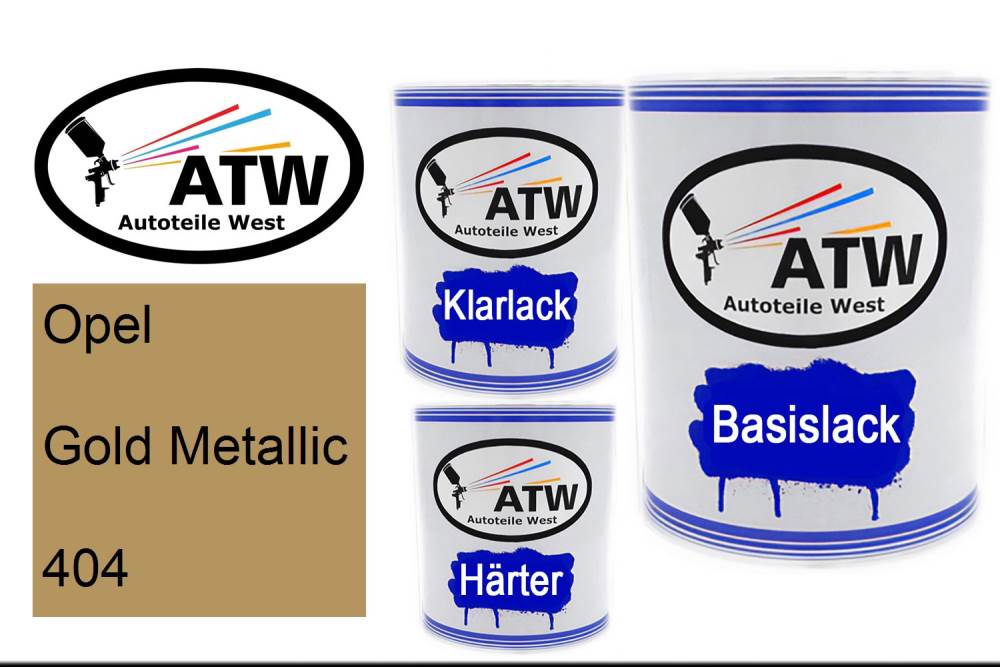 Opel, Gold Metallic, 404, 1L Lackdose + 1L Klarlack + 500ml Härter - Set