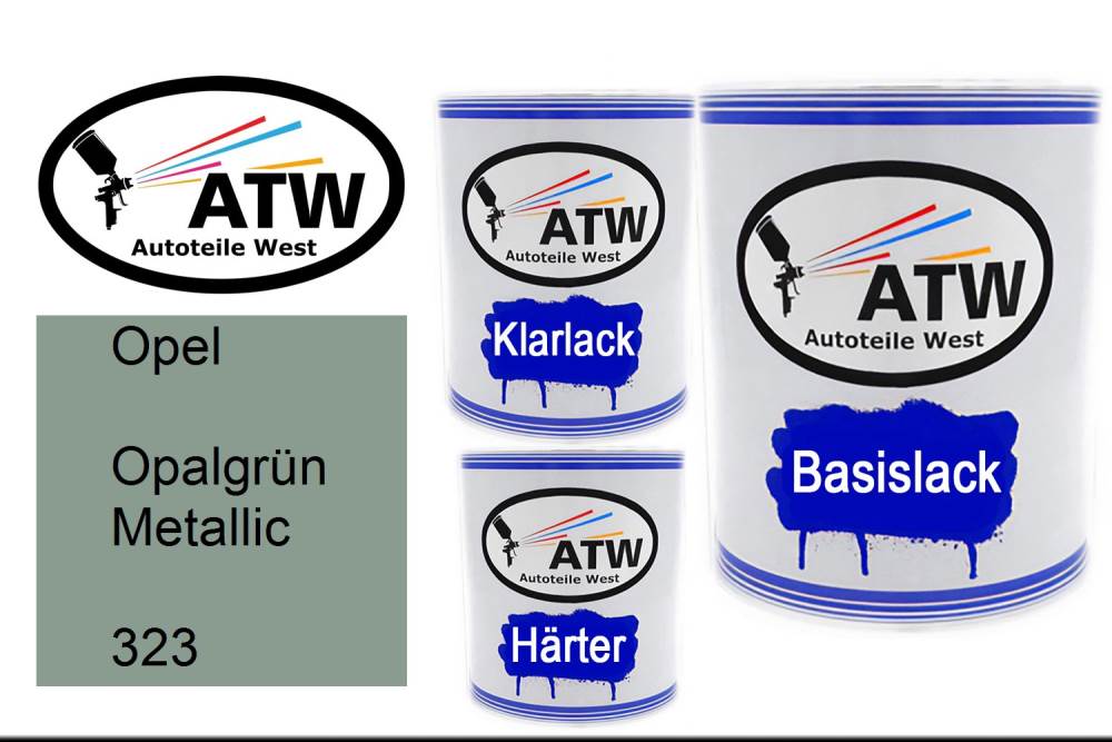 Basislack, 1L Lackdose + 1L Klarlack + 500ml Härter - Set. Für Opel, Opalgrün Metallic, 323. Profiqualität von ATW.