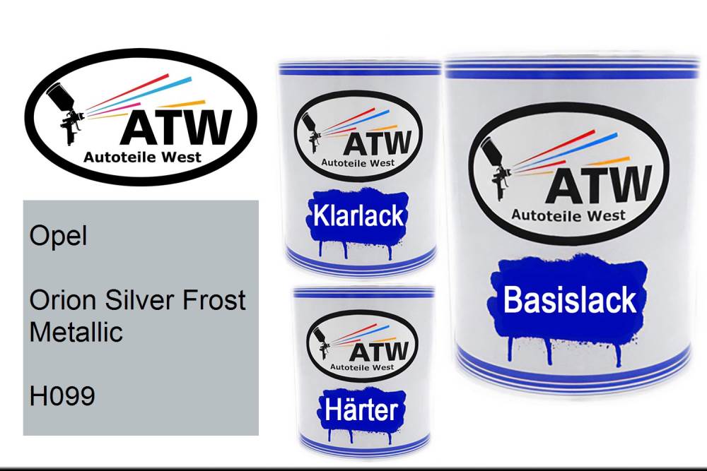 Opel, Orion Silver Frost Metallic, H099, 1L Lackdose + 1L Klarlack + 500ml Härter - Set