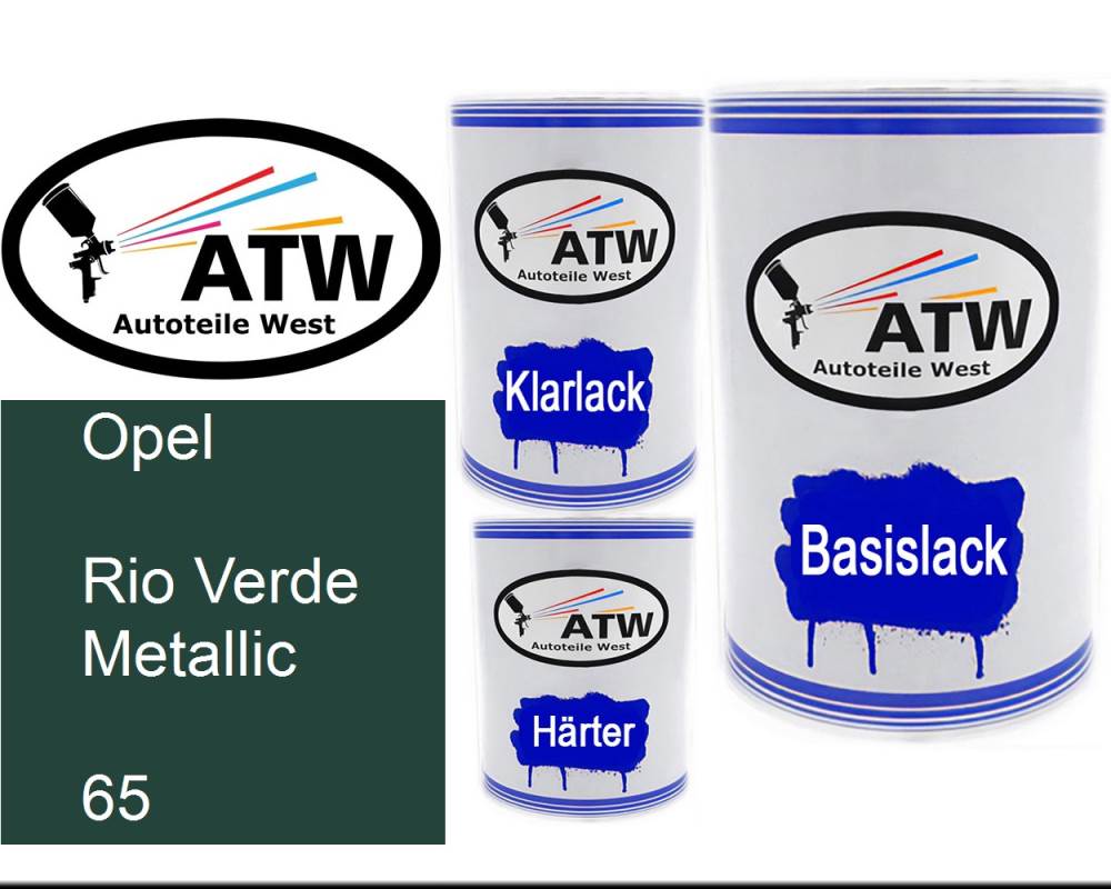 Basislack, 500ml Lackdose + 500ml Klarlack + 250ml Härter - Set. Für Opel, Rio Verde Metallic, 065. Profiqualität von ATW.
