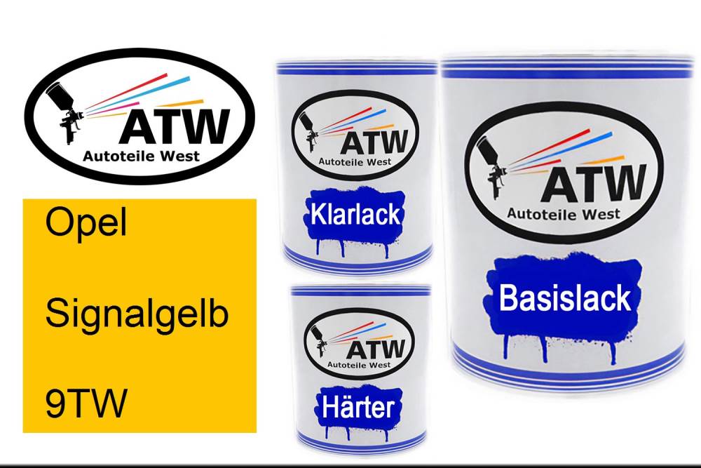 Basislack, 1L Lackdose + 1L Klarlack + 500ml Härter - Set. Für Opel, Signalgelb, 9TW. Profiqualität von ATW.