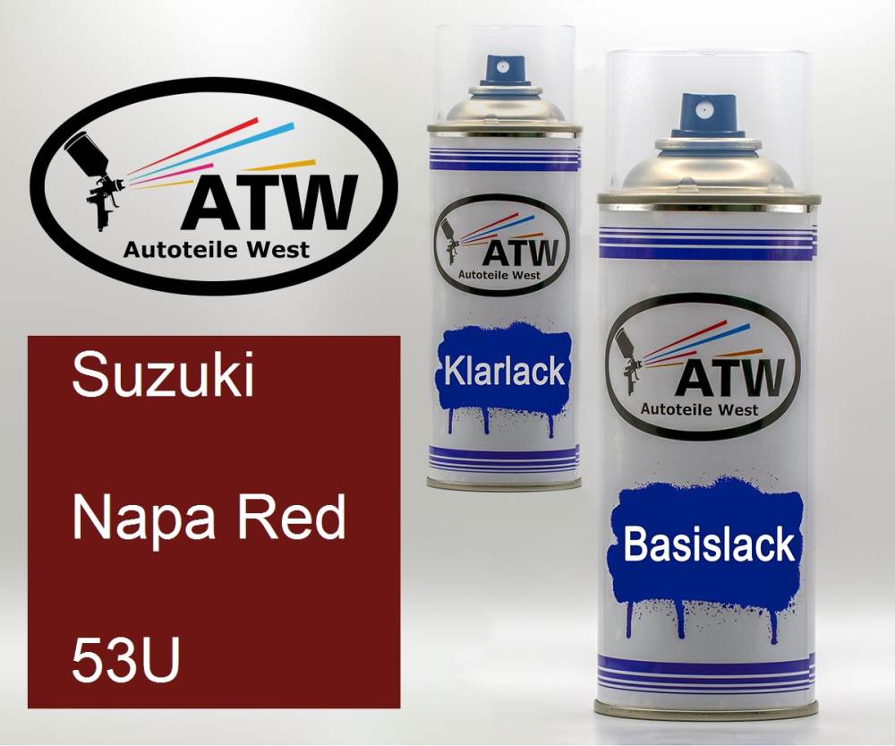 Basislack, 400ml Sprühdose + 400ml Klarlack - Set. Für Suzuki, Napa Red, 53U. Profiqualität von ATW.